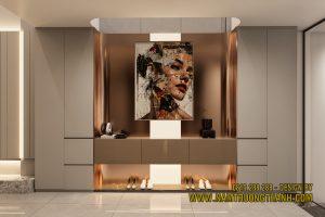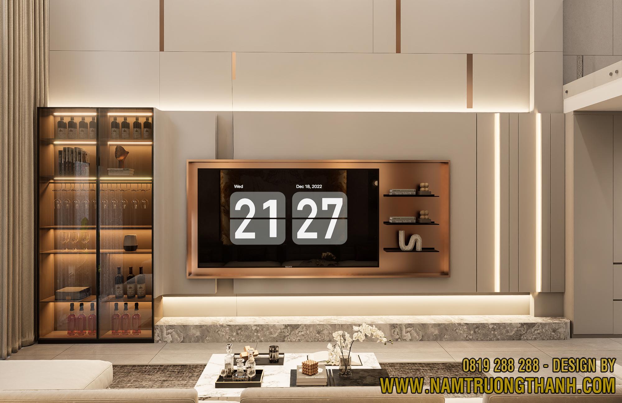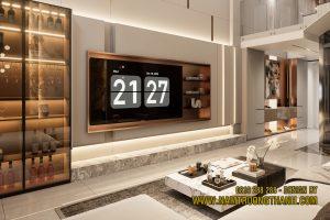 1.1 Hệ vách tivi kịch trần: Thủ pháp kéo giãn chiều cao