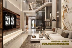 1. PHÒNG KHÁCH – TRÁI TIM CỦA BẢN THIẾT KẾ NỘI THẤT NHÀ PHỐ THÔNG TẦNG