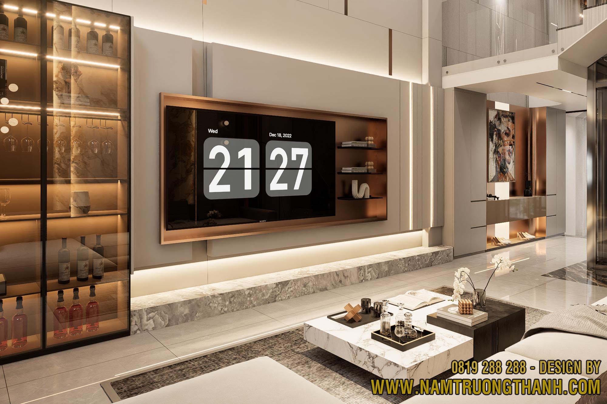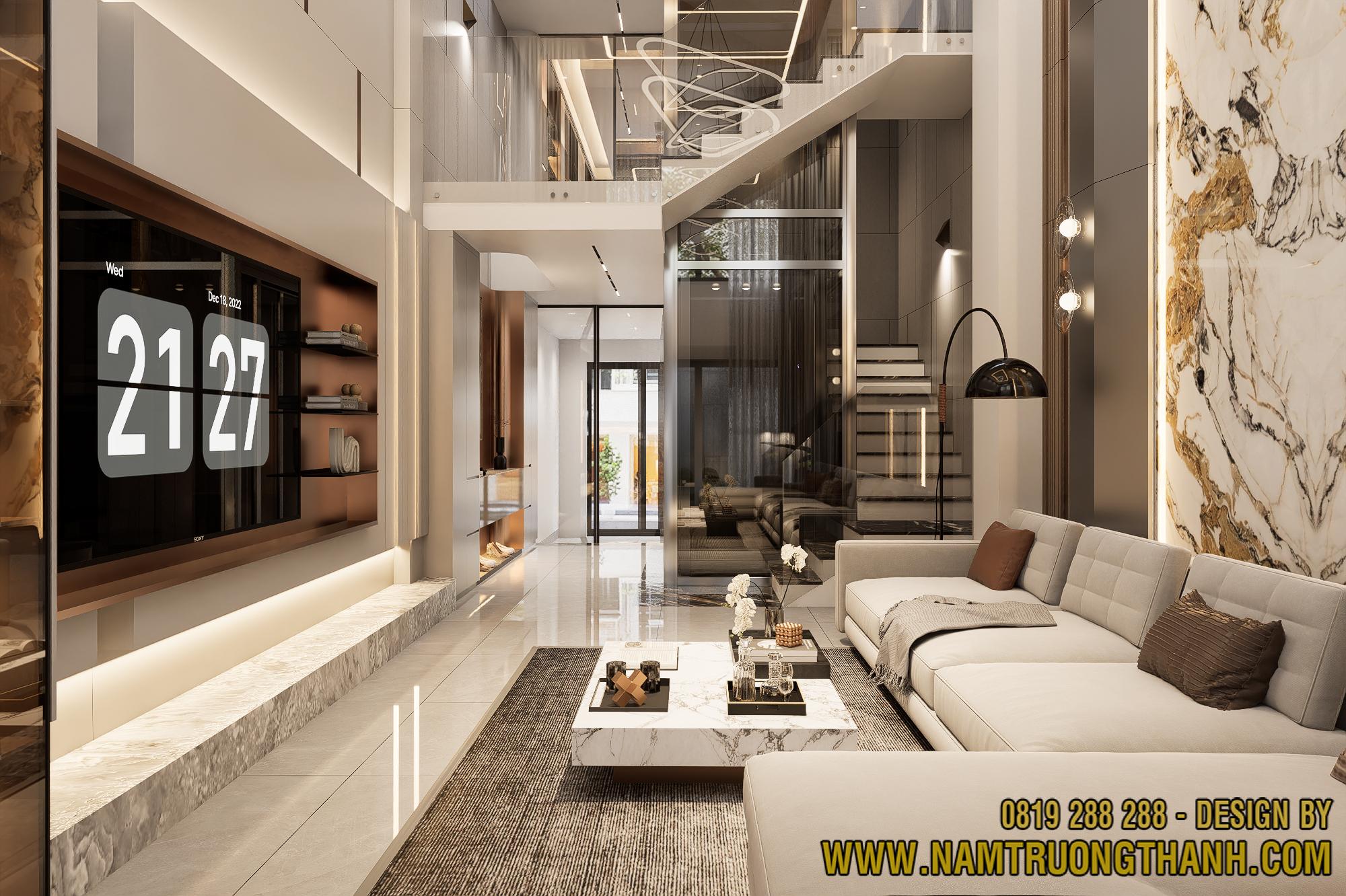 Mẫu thiết kế nội thất nhà phố thông tầng được Nam Trường Thành tâm huyết kiến tạo không chỉ là một không gian sống, mà còn là bản giao hưởng giữa kiến trúc Modern Luxury và sự tiện nghi đẳng cấp. Bằng việc tối ưu hóa khoảng thông tầng khoáng đạt cùng các lớp vật liệu thượng hạng, chúng tôi mang đến một tổ ấm đầy cảm hứng, nơi mỗi chi tiết đều tôn vinh vị thế và gu thẩm mỹ khác biệt của gia chủ. Sự kết nối hoàn mỹ này hứa hẹn sẽ thay đổi hoàn toàn định nghĩa về sự hưởng thụ không gian ngay tại nhà.
