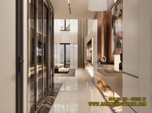 Trong các dự án tại Nam Trường Thành, chúng tôi quan niệm nội thất nhà phố thông tầng không chỉ là giải pháp về kiến trúc mà còn là cách để gia chủ khẳng định vị thế. Việc chừa lại một khoảng không thông suốt giữa các tầng giúp xóa tan cảm giác “nhà ống” chật hẹp thường thấy.